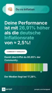 Mein Jahresrückblick 2024 zeigt, wie wichtig eine flexible Anlagestrategie ist. Anfang des Jahres habe ich meine Bitcoin und Ethereum Positionen verkauft, um Risiken zu minimieren. Im Laufe des Jahres habe ich meine Einschätzung angepasst und eine kleine Bitcoin-Position wieder eröffnet. Mein Trade Republic Depot besteht nun aus 2 ETFs, 6 Einzelaktien und einer Kryptowährung. Diese überschaubare Auswahl ermöglicht mir eine bessere Kontrolle über mein Portfolio. Mit Parqet halte ich meine Investments transparent und übersichtlich. Dort kannst du dir mein Depot über diesen Link im Detail ansehen.
