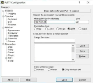 Um eine Verbindung zum Raspberry Pi aufzubauen ist ein SSH Client wie Putty notwendig. Als Ziel Adresse wird die eben notierte IP Adresse eingetragen und eine Verbindung aufgebaut. Nun sollte der Login abgefragt werden. Trage dabei die im Raspberry Pi Imager gesetzten Werte ein und bestätige mit Enter.